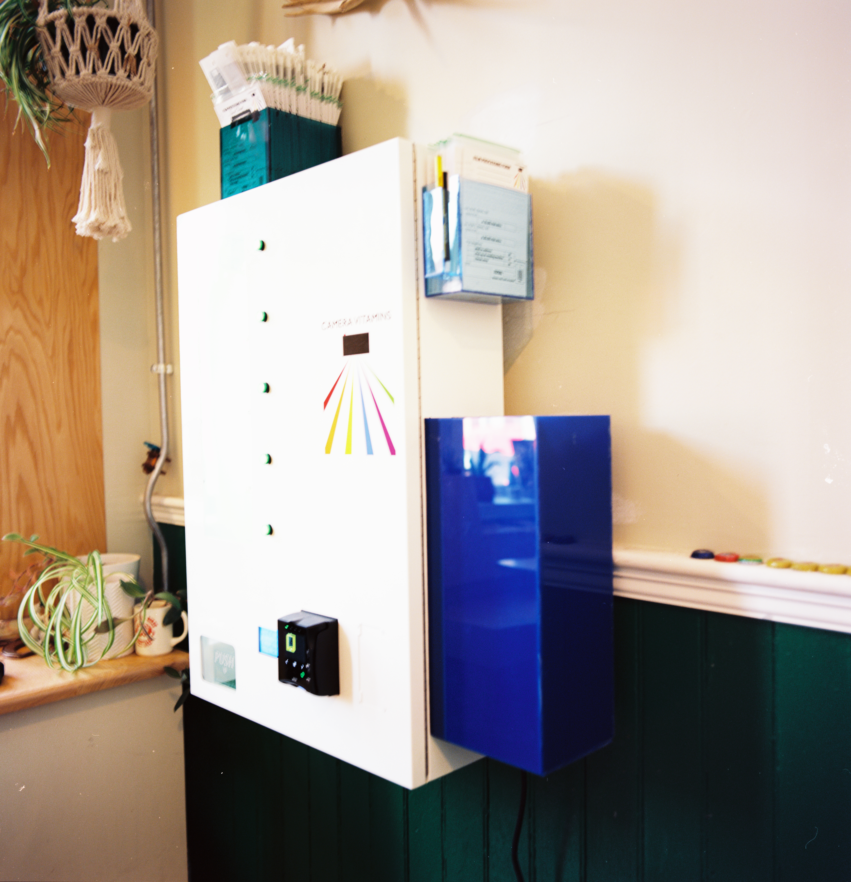 Vendy machine with a revolving selection of color, black and white, 35mm, and 120 film.